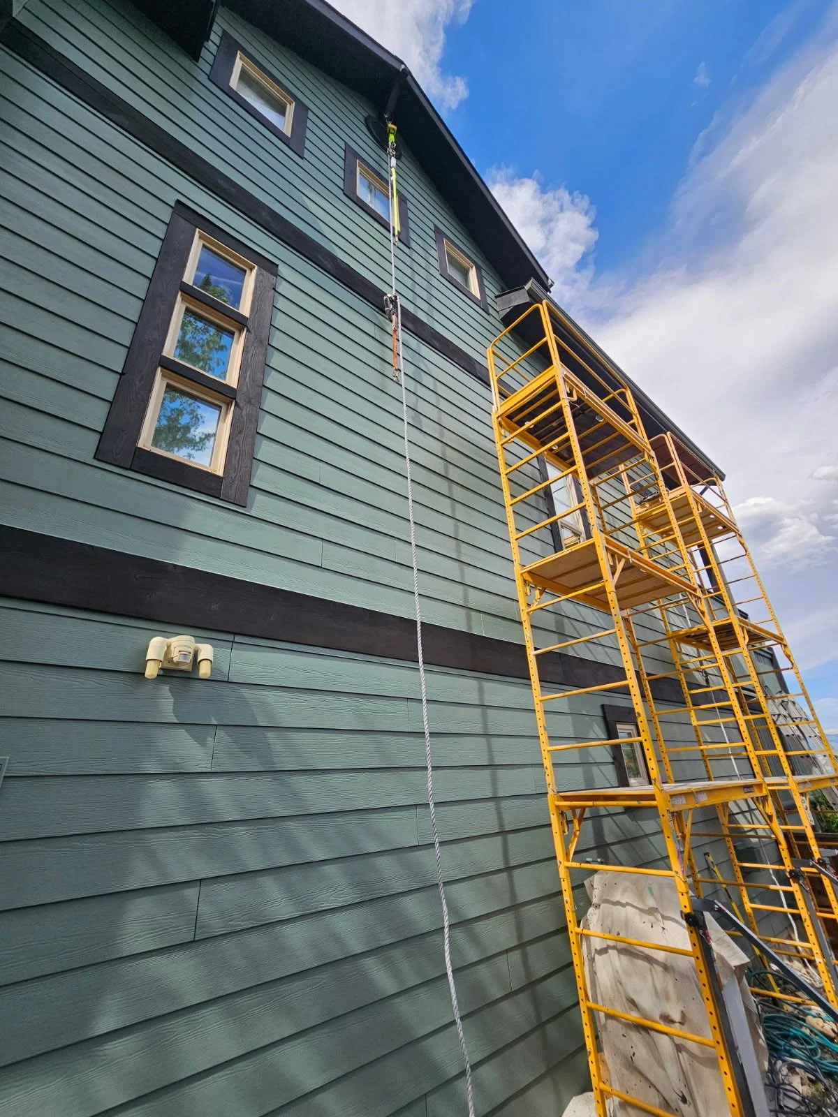 Our exterior painters gave this stunning home a modern makeover. We stained the wood trim, soffits, and fascia with Dulux WoodPride semi-transparent in Ebony and applied two coats of premium Cloverdale Guardian paint to the siding. The result? A flawless, long-lasting finish!
